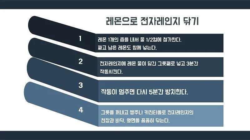 전자레인지의 찌든 때는 대체로 벗겨내기 힘들지만 레몬을 활용하면 좀 더 빠르게 닦아낼 수 있다.