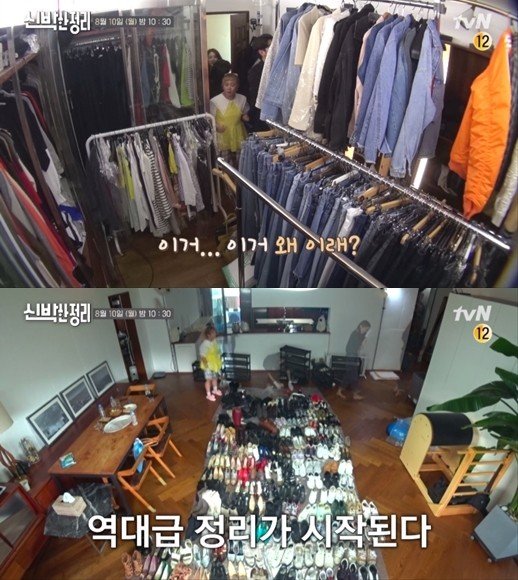 이날 세 사람은 첫 정리로 윤은혜 신발장 털기에 나섰다. 하지만 거실 한 가득 신발들이 꽉 차 보는 이들에게 놀라움을 안겼다. 박나래는 “저는 이 광경을 보면서 딱 두 문장으로 표현할 수 있을 것 같다. 창고 대방출, 사장님이 미쳤어요”라고 말해 주위를 웃음 짓게 했다.