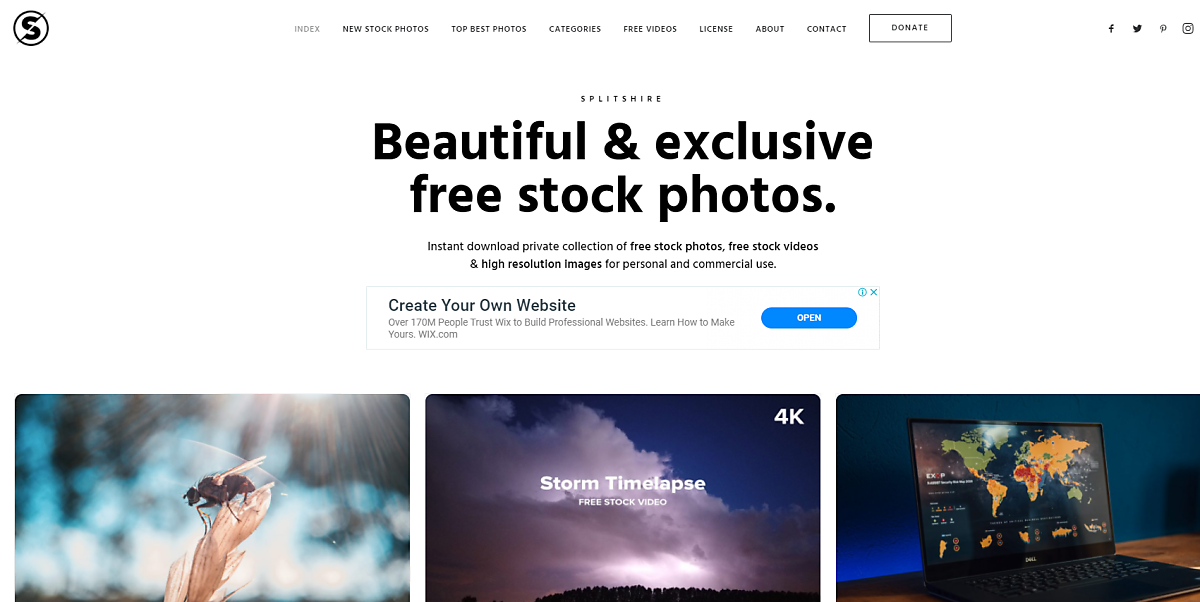 픽사베이와 동일하게 무료 이미지와 동영상을 저작권 상관없이 사용할 수 있다. 스플릿샤이어는 해당사이트 주인이 포토그래퍼로써 직접 찍은 사진이나 제작 영상을 공유하는 사이트이다.