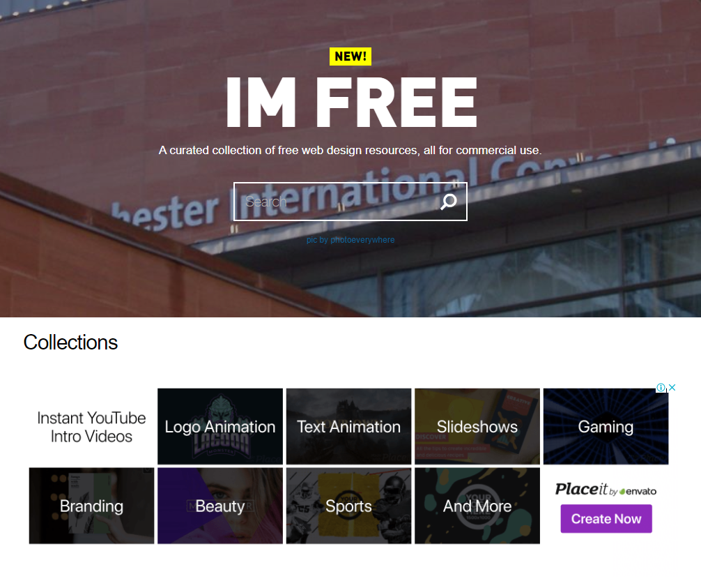 아임프리는 업무에 사용하기 좋은 사진들이 많이 제공된다. 또한 다양한 업무용 아이콘들이 많아서 파워포인트나 발표 시 사용하기 좋은 아이콘과 이미지들이 많다. 전문적인 분야의 작업도 저작권 걱정없이 활용하기 좋은 템플릿등이 많아 디자이너가 이용하기 좋은 사이트이다.