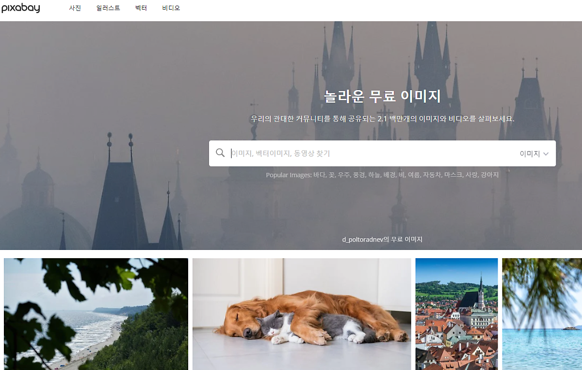 픽사베이는 키워드별로 정확한 사진을 검색할 수 있는 기능을 가지고 있다. 100만장 이상의 고퀄리티 사진과 일러스트 등 다양한 그림도 제공이 된다.