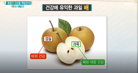 기관지에 좋은 배는 루테올린이라는 성분이 바이러스 감염을 예방하는 효과를 준다.