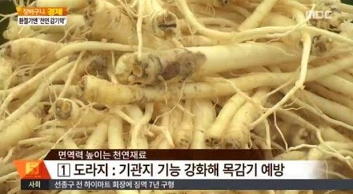 도라지는 기관지 건강에 좋은 음식으로 많이 알려져 있다. 도라지에는 사포닌이라는 성분이 풍부하게 함유되어있다. 해당 성분은 체내에서 항산화작용을 하여 몸의 각종 염증을 제거해준다. 이에 항염 작용을 하여 후두염 같은 각종 염증질환에 좋으며, 면역력도 향상시켜준다.