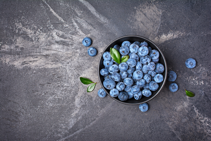 뛰어난 항산화 성분으로 피로를 풀어주는 블루베리는 100g 당 45kcal로 한 연구결과에 의하면 대사증후군을 앓는 비만 환자에게 블루베리 식단이 효과적인 것으로 알려졌다.