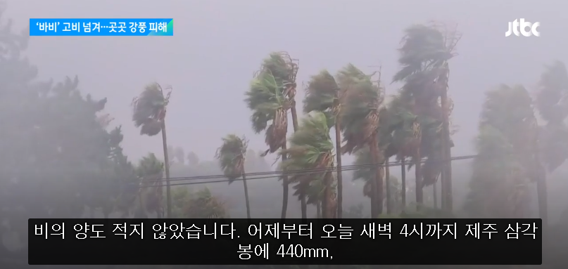 지금은 완화됐지만 위력적인 강풍을 동반하면서 전국의 하늘길과 바닷길이 끊기는가 하면 강풍에 쓰러진 나무가 전선을 덮쳐 정전이 발생하기도 했다.