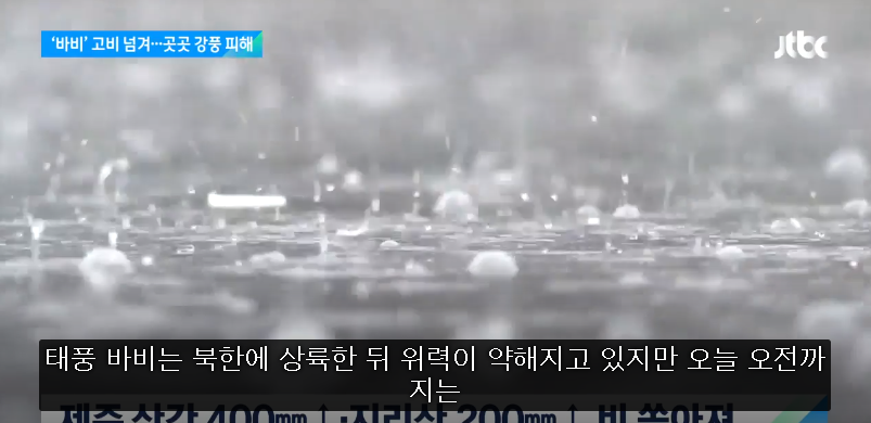 제8호 태풍 '바비'가 27일 새벽 서해 중부 해상을 통과하면서 인근 지역에 강한 바람과 함께 비가 내리고 있다.