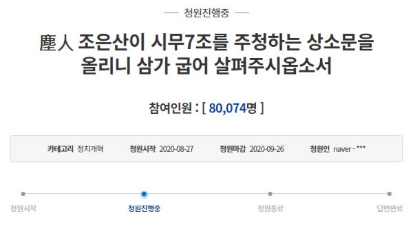 또 청원이 비공개에서 공개로 전환된 지 하루만인 28일 오전 9시 16분 기준 20만명을 돌파했다.