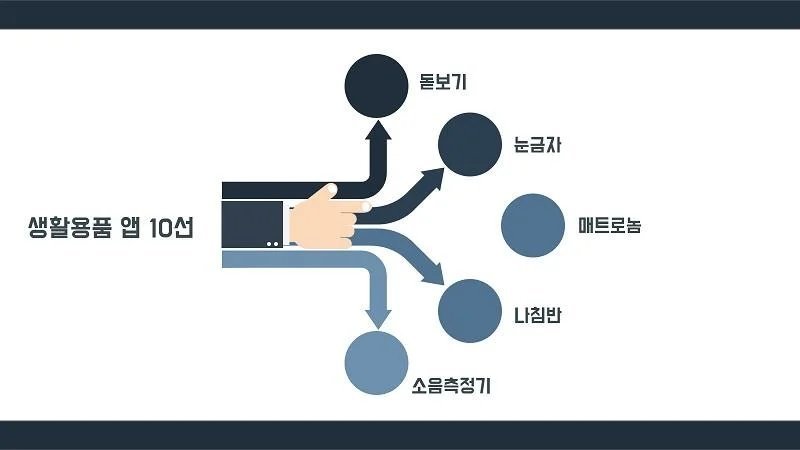 스마트폰의 보급과 더불어 각종 앱도 개발됐다. 그중에는 실제 물건을 대체하는 앱도 있다. 생활용품 전문매장이나 문방구에서 사서 썼던 물건을 앱으로 다운받아 편리하게 사용할 수 있는 것이다.