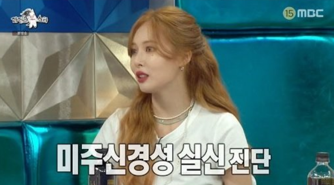 29일 재방송된 MBC `라디오스타`에서는 현아가 데뷔 후 14년 동안 쉴 틈 없이 일해왔다고 고백했다. 현아는 최근 미주신경성 실신으로 쓰러진 적이 있다고 밝혔다.