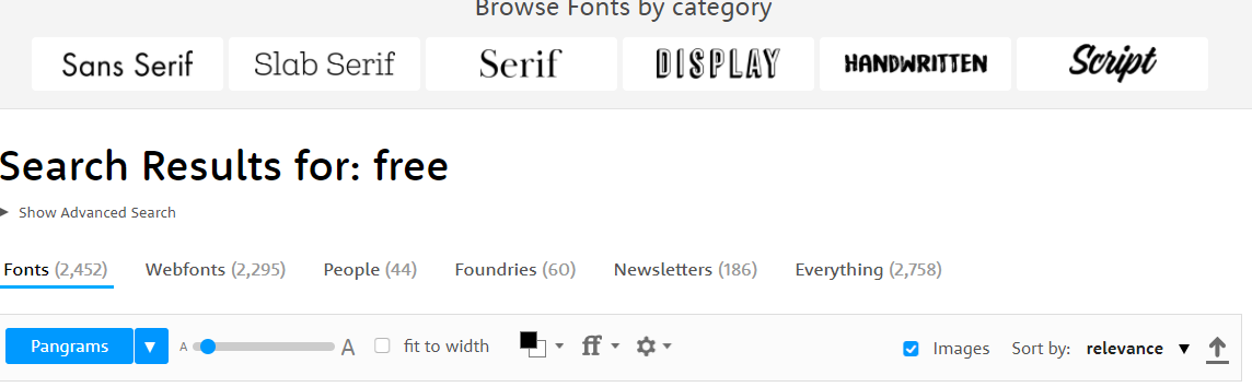 세계 최대의 폰트 컬렉션에서 무료 폰트들만 필터링해서 볼 수 있다. 마이폰트닷컴에서는 다양한 무료 폰트들을 제공하고 있다. 만약 찾고 싶은 폰트가 있다면 이미지 검색을 통해 원하는 폰트의 이름을 알아낼 수도 있다.