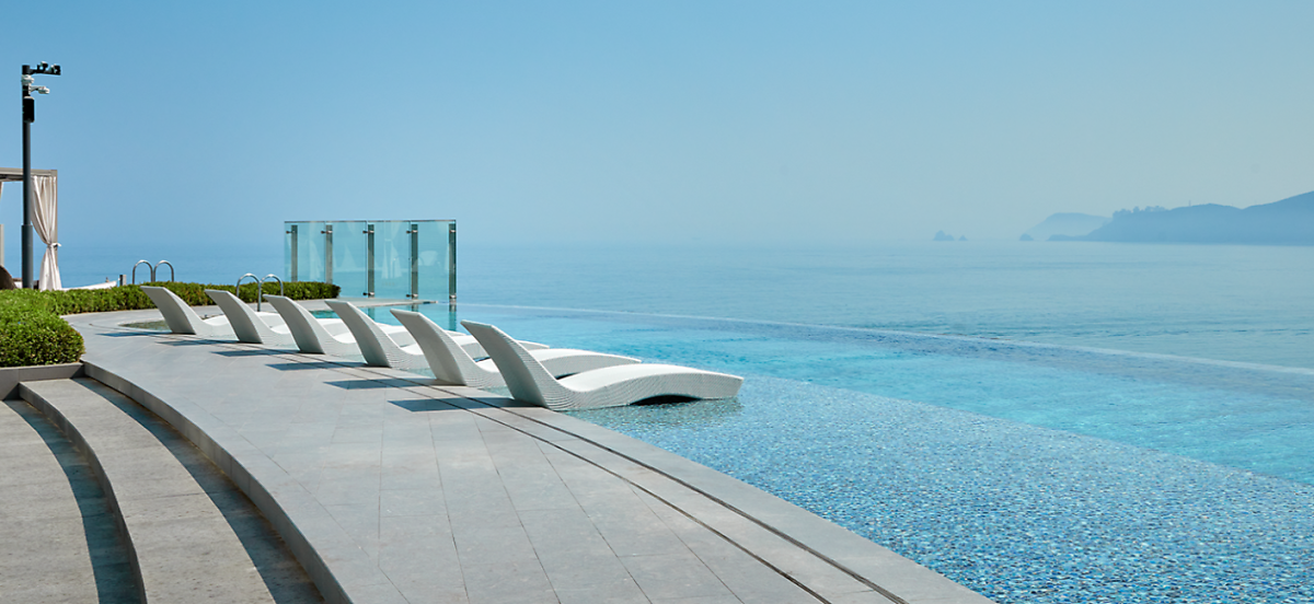 또한 눈 앞에 펼쳐지는 끝 없는 수평선 view. 한정된 수영장이 마치 넓은 바다처럼 느껴지는 마법 같은 분위기이다. 인피니티 풀은 6층에 위치하고 있으며 27-29도 정도의 미온수풀로 운영된다. 실내 풀 또한 개방감 있게 연결되어 있기 때문에 야외수영장을 강점으로 두고 있는 해운대 호텔들 사이 에서도 충분히 메리트가 있다.