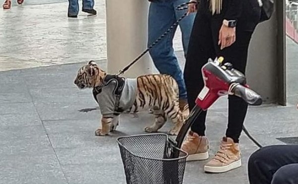 멕시코 쇼핑몰에서 한 여성이 목줄을 한 새끼 호랑이를 데리고 나온 모습이 포착돼 거센 논란을 불러왔다.