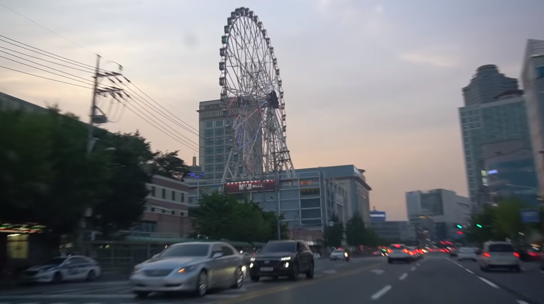 도심 속 건물 옥상에 설치된 울산 롯데꿈동산 관람차!