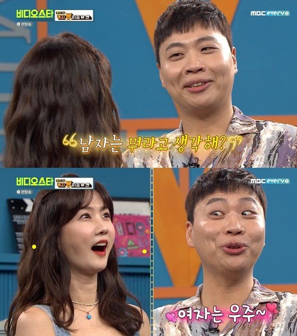 이상준과 박소현은 MC들의 제안에 눈맞춤에 나섰는데요. 이상준은 “남자는 뭐라고 생각해? 남자는 하늘, 여자는 우주”라고 재치 있는 입담을 전했습니다. 그러자 김숙은 “나 박소현 씨 표정 봤다. ‘재밌었어’라고 하고 뒤돌아 서서 정색했다”고 말해 주위를 폭소케했습니다.