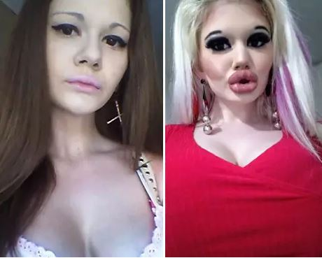 바비인형처럼 볼륨감 있는 입술을 만들기 위해 시술만 15차례 받은 이 여성의 사진은 혹시 합성이 아닐까 의심이 들 정도다.