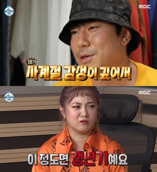 이에 스튜디오에서 박나래는 "이 정도면 갱년기다"라고 말해 웃음을 유발했습니다. 이어 "남자 갱년기가 더 세게 온다고 하더라. 하늘만 봐도 눈물이 난다고 하더라"라고 설명했습니다.