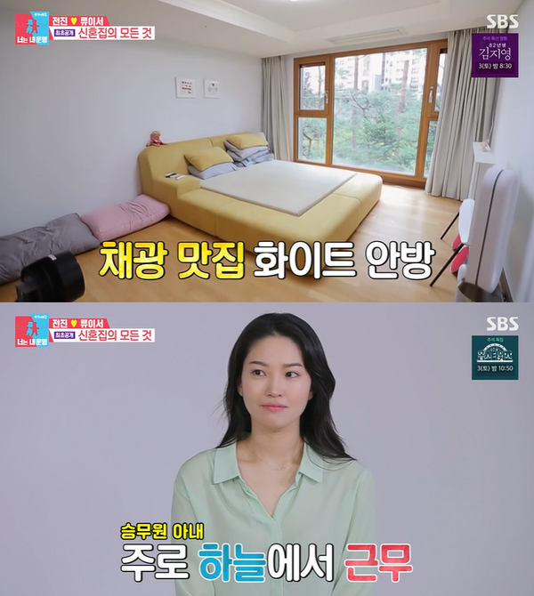전진은 “원래 높은 층을 안 좋아하는 편이다. 근데 승무원 아내가 항상 높은 곳에서 일을 해서 낮은 층을 좋아했다. 저랑 의견이 맞아서 만족하면서 지내고 있다”고 설명했습니다.