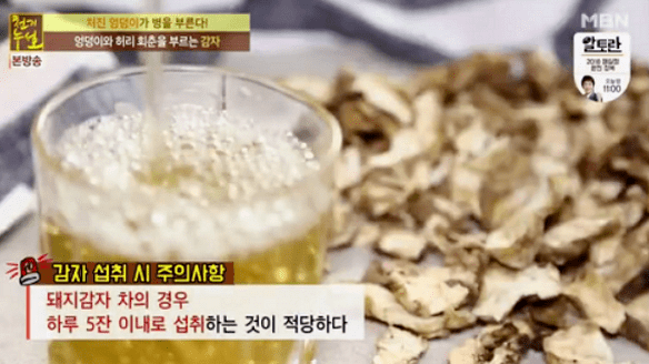 또, 하루에 5잔 이내 섭취하는 것이 좋고, 잠들기 전에 마시면 숙면에 도움이 된다고 합니다. 돼지감자차는 10월에 수확하기 때문에 환절기에 꼭 챙겨먹기 좋은 음식이랍니다.