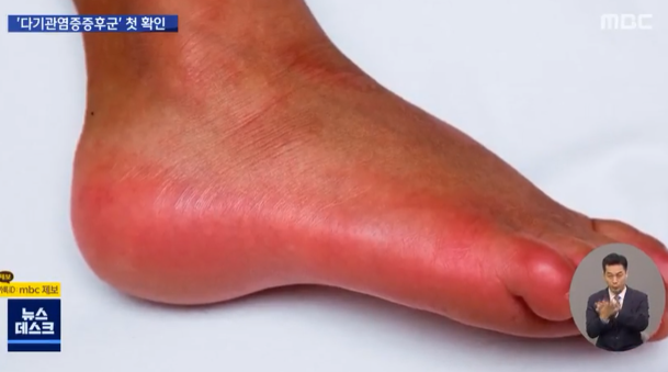 소아·청소년 다기관염증증후군이 심한경우 온 몸에 붉은 반점이 가득하고 눈이 충혈되기도 합니다. 또, 발은 퉁퉁 붓고, 손가락 끝 피부가 벗겨지기도 합니다. 전신에 염증이 퍼져 장기가 손상되면 사망에 이를 수 있습니다.