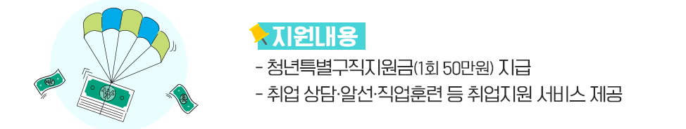 1인당 지원금이 50만원이 현금으로 지급되며, 취업상담과 알선, 직업훈련 등의 서비스를 제공받을 수 있습니다.