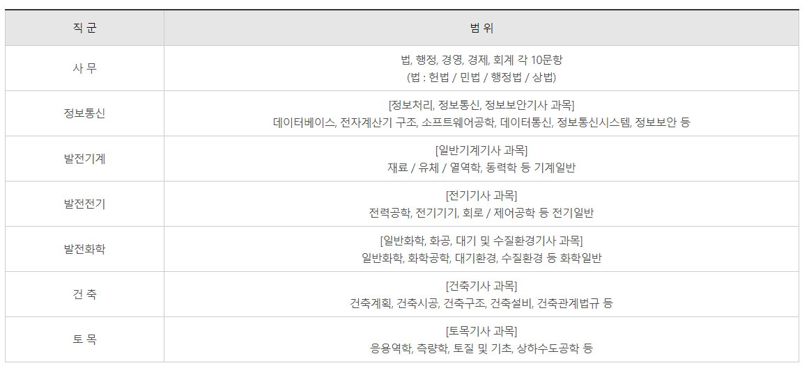 직군별 전공지식(한국사 포함) 및 직업기초능력평가 중 인지요소를 평가합니다.
